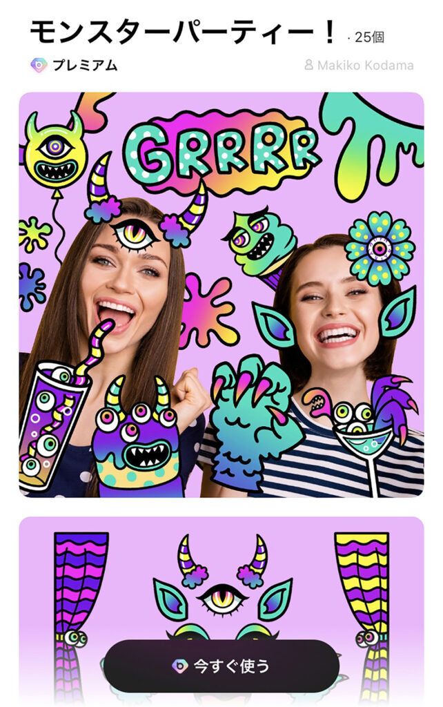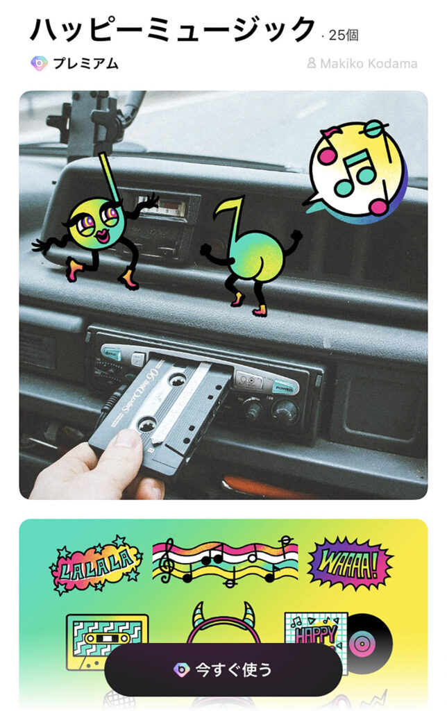 Meitu(現・PIXOCIAL TECHNOLOGY)様とアーティスト契約を結び、カメラアプリ『BeautyPlus』でご利用いただけるデジタルステッカーデザインを提供させていただきました。